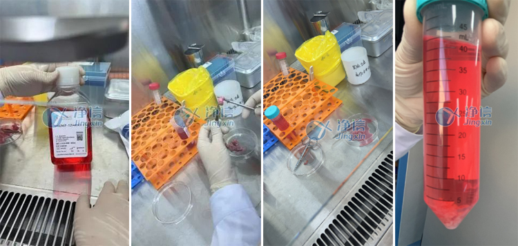1、準備50ml的消化管,韌帶組織1cm*2cm大小一塊,剪碎成5mm左右小塊,再用DMEM/F-12(HAM)1:1清洗組織碎片,再離心去掉清洗液。