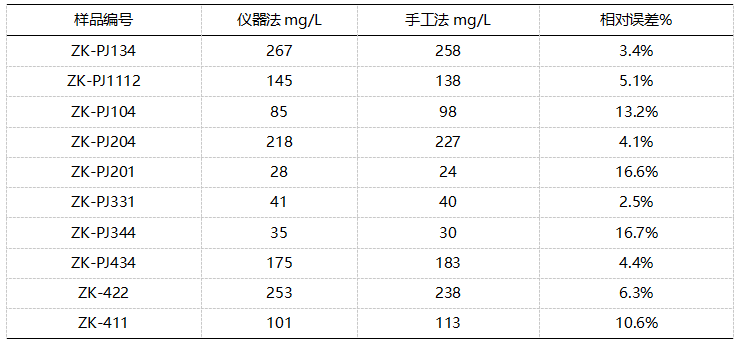 根據實驗數據結果顯示:儀器法測試結果和手工法測試結果均小于20%,JX-C7048滿足實際工作的需要。