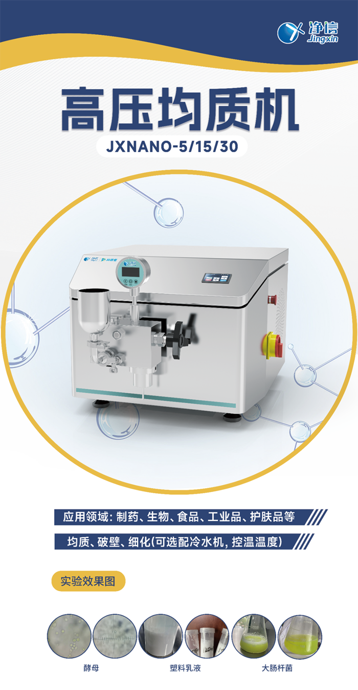 上海凈信高壓均質機,可廣泛應用于生物工程、制藥行業、食品工業、精細化工、化妝品等行業。能夠很好的提高實驗效率和數據質量,解決你的困惑。高壓均質機作為實驗室里的黑科技,為科研事業提供了強大的技術支持。它不僅具有好的均質效果、操作簡單安全可靠的特點,還具備高效節能的優勢。相信在未來的科研道路上,高壓均質機將會發揮更加重要的作用,為實驗室的小伙伴們帶來更多的驚喜和收獲!