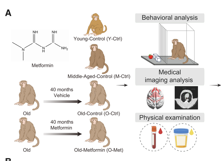 隨著全球人口老齡化的加劇,衰老及其相關疾病的防治成為亟待解決的重大科學問題。二甲雙胍作為一種經典的降糖藥物,近年來被發現具有顯著的抗衰老效果。然而,其具體作用機制尚不明確。為了深入研究二甲雙胍對靈長類動物衰老的影響,劉光慧團隊展開了長達8年的研究