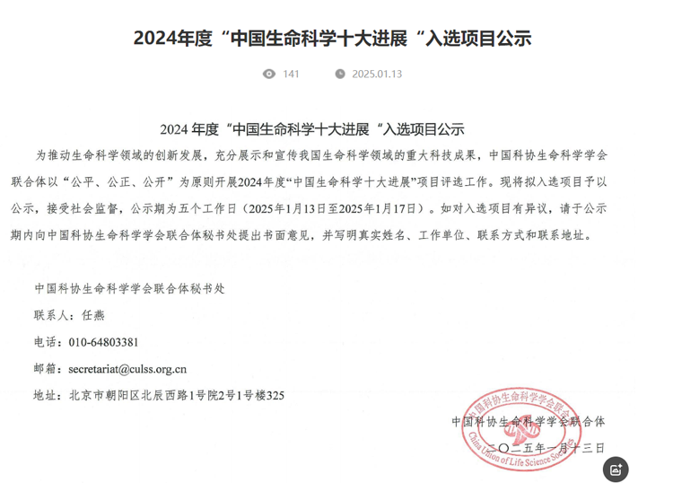 Home 公司新聞 重磅|凈信組織研磨儀助力科學家獲得2024年度中國生命科學十大進展”