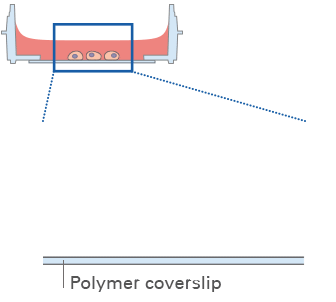 The μ-Dish 35 mm, high comes with a thin ibidi Polymer Coverslip Bottom that has the highest optical quality (comparable to glass) and is ideally suitable for high-resolution microscopy. It is also available with a #1.5H Glass Coverslip Bottom for TIRF or single molecule microscopy.