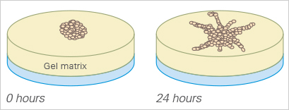 The sprouting potential of a cell cluster can be conveniently analyzed using the μ-Plate Angiogenesis 96 Well. To carry out a sprouting assay, spheroids or pieces of tissue (e.g., from the aorta), are placed onto or directly in the gel matrix before imaging.