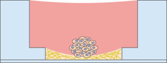 When using less than 10 μl of gel to fill the inner well of the μ-Plate Angiogenesis 96 Well, small numbers of cells can be cultivated and focused on a soft gel surface.