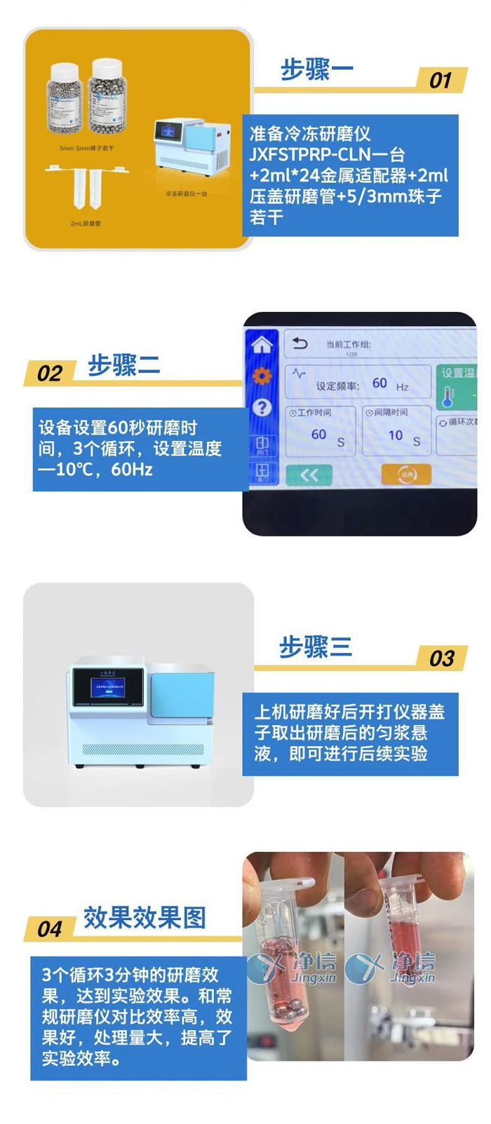1.低溫保護活性:-50℃冷凍,全程低溫研磨,有效防止病原體降解,保障核酸/蛋白質完整性