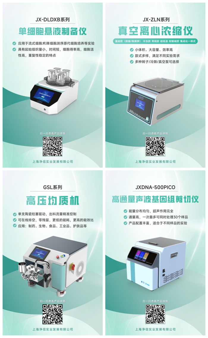 上海凈信是一家專業(yè)從事生命科學儀器、實驗室自動化設(shè)備的研發(fā)、生產(chǎn)、銷售為一體的國家高新技術(shù)企業(yè)。十幾年來凈信掌握自主核心技術(shù),專注于研發(fā)、生產(chǎn)樣品前處理系統(tǒng)等生命科學儀器。