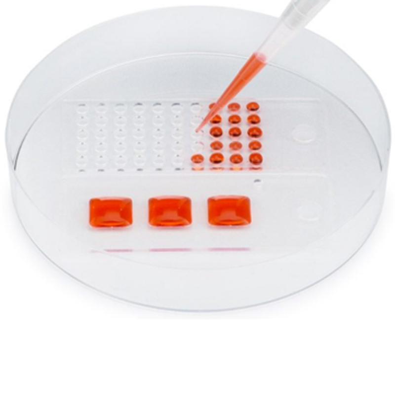 l  硅膠墊片極其適合在玻璃載玻片上或者聚苯乙烯培養皿里形成孔,