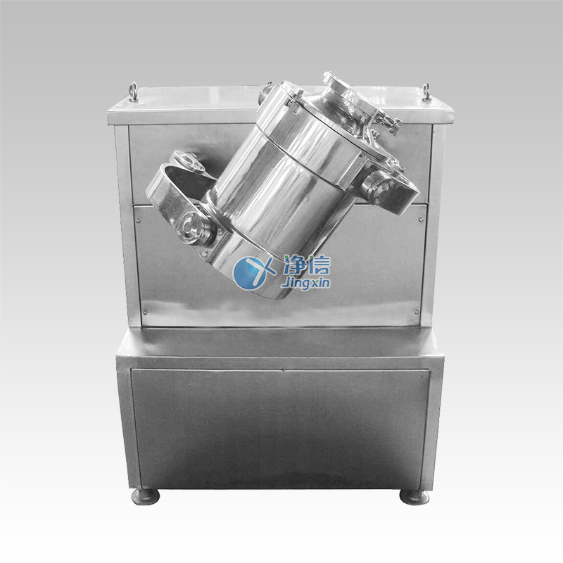 在完全密閉的容器里,在主動軸的帶動下將不同比重的物料,快速地翻轉、倒置、搖動,促使物料沿著筒體做環向、徑向、和軸向的三向復合運動,從而實現多種物料的相互流動、擴散、積聚、摻雜,達到均勻混合的目的。整個過程確保無塵化進行,方便清洗。